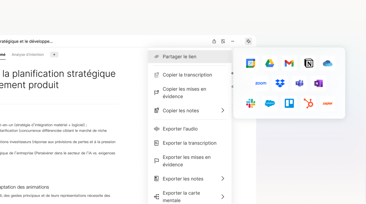 Partagez ou exportez vos insights en équipe en toute simplicité