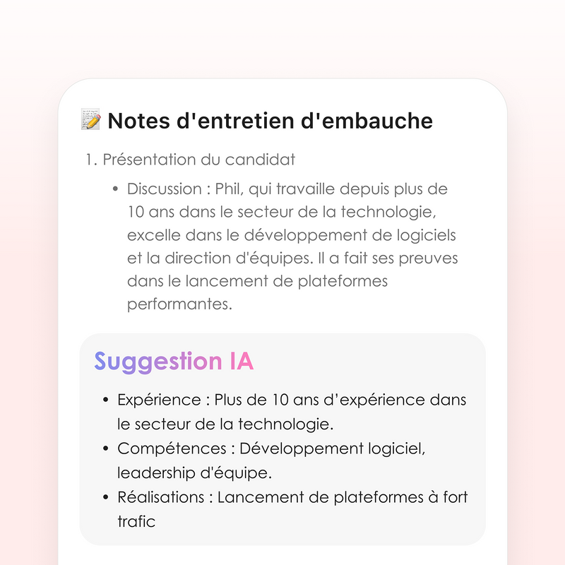 Exprimez vos pensées, puis transcrivez-les, résumez-les, organisez-les et rendez-les consultables à tout moment dans votre base de connaissances.