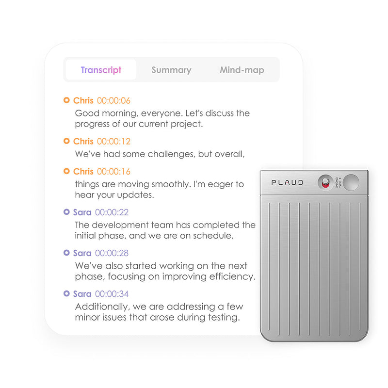Participez pleinement à la discussion pendant que Plaud Note capture, résume et visualise les décisions clés, les prochaines étapes et les idées pour vous.