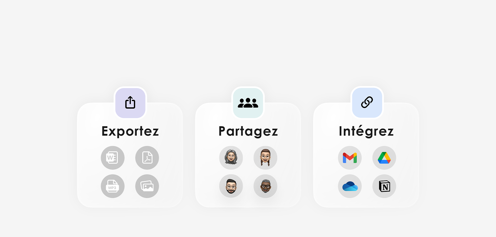 Transformez les voix et les conversations en résumés, informations et éléments utiles en toute simplicité.
