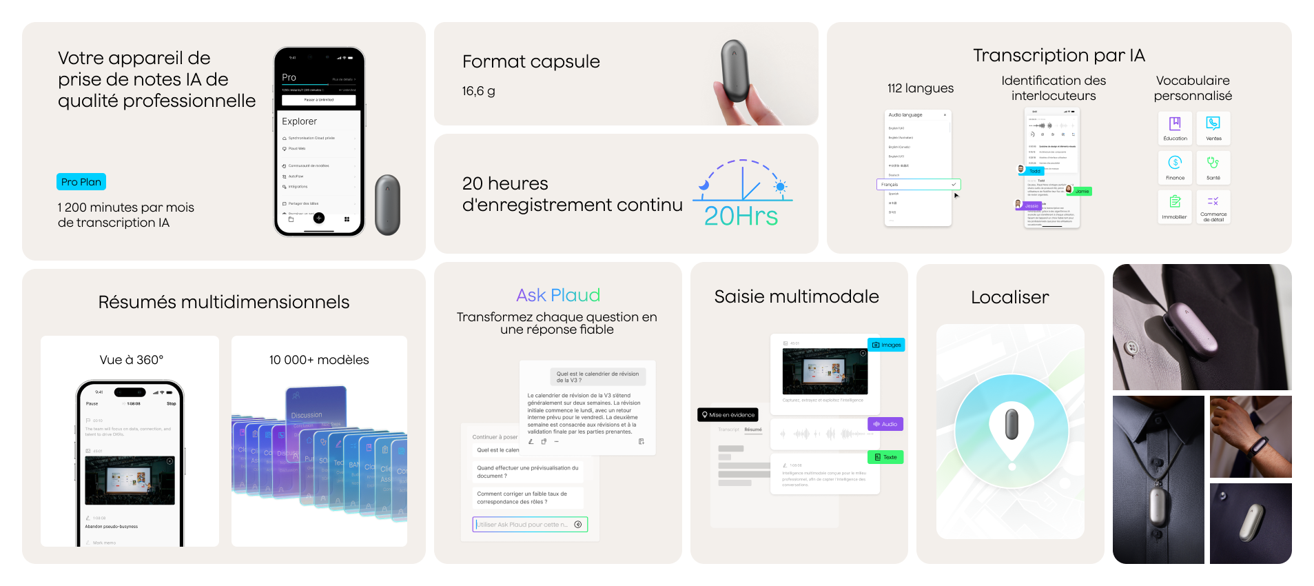 Plaud NotePin + Abonnement Annuel au Pro Plan IA Les commandes sont généralement expédiées sous 1 à 2 jours ouvrables.