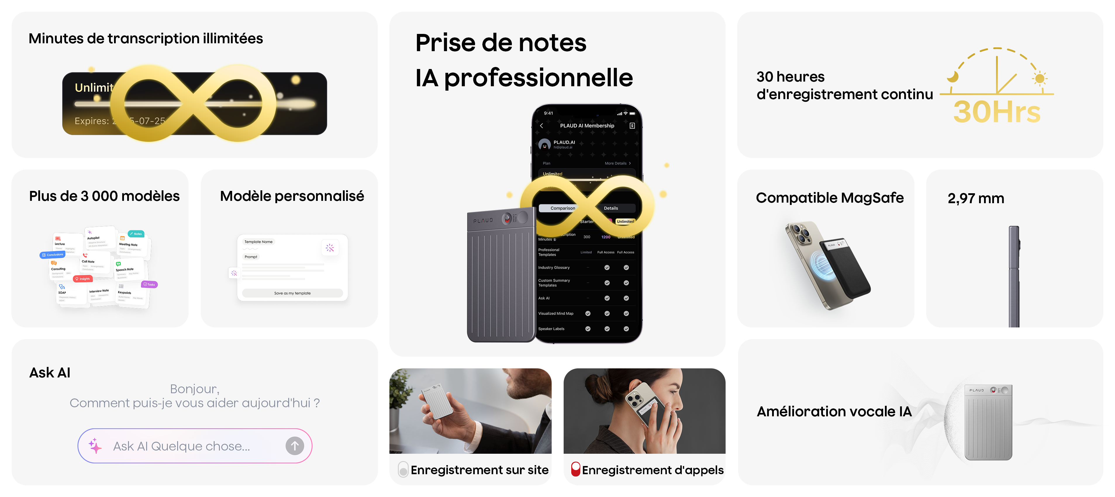 Plaud Note et 2 Abonnement Annuel à l’IA Plan Annuel Illimité