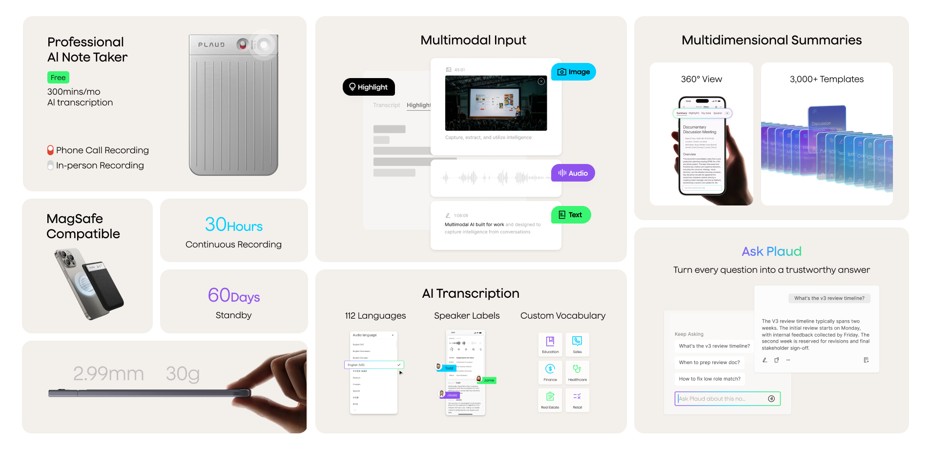 Utilisez l'intelligence dans tout votre flux de travail - Ask Plaud | Autoflow | Intégration, partage et exportation
