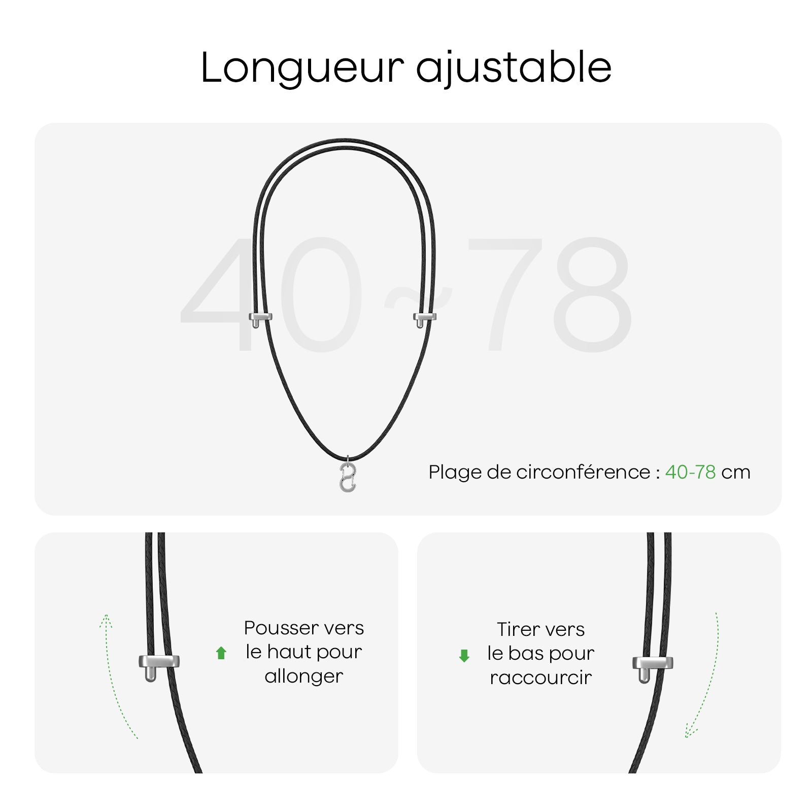 La conception à double ajustement permet une personnalisation facile de la longueur (environ 20 à 38 cm), offrant un ajustement parfait et non irritant pour un port toute la journée autour du cou, que ce soit en réunion ou en déplacement.