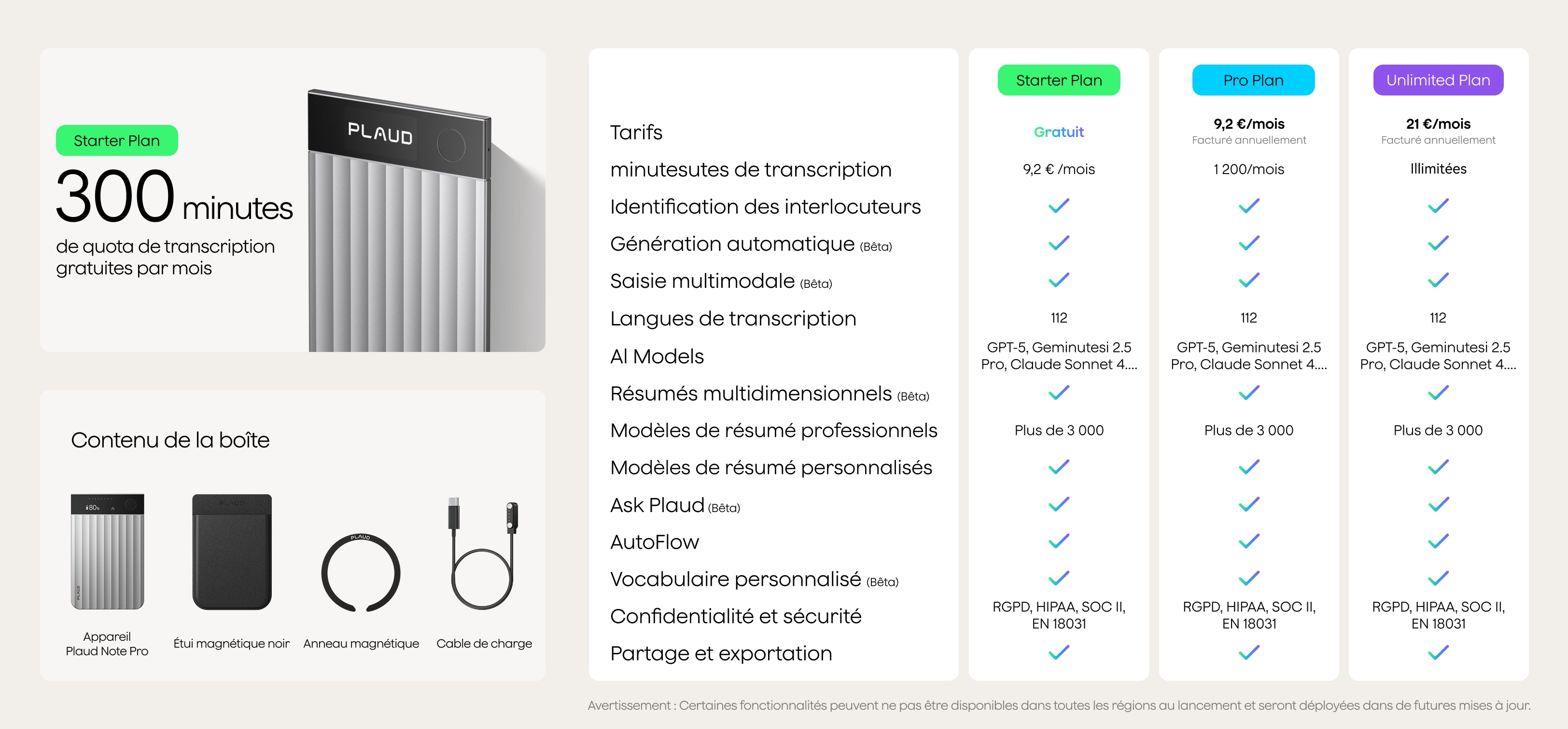 Plaud Note Pro + Abonnement Annuel au Pro Plan IA